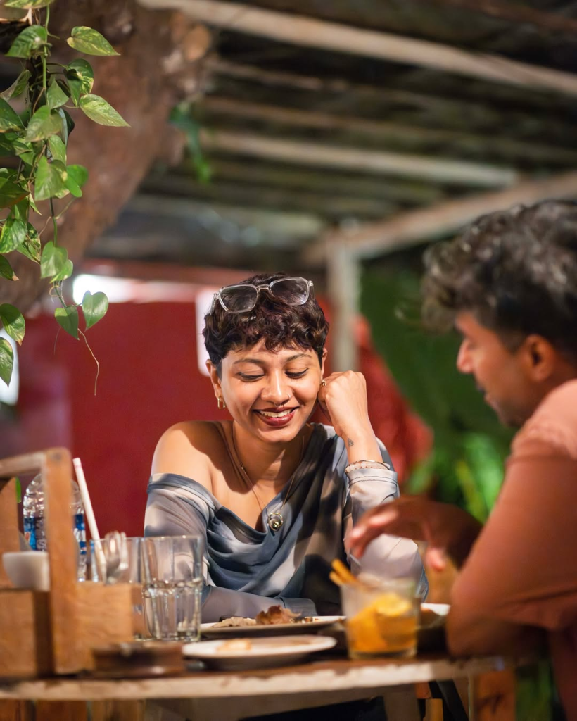 As the light softens and the sky turns gold, the space shifts gently from day to night. Conversations grow warmer. Drinks arrive at the table just as laughter spills over. There’s no rush here — no one checking the time too closely.